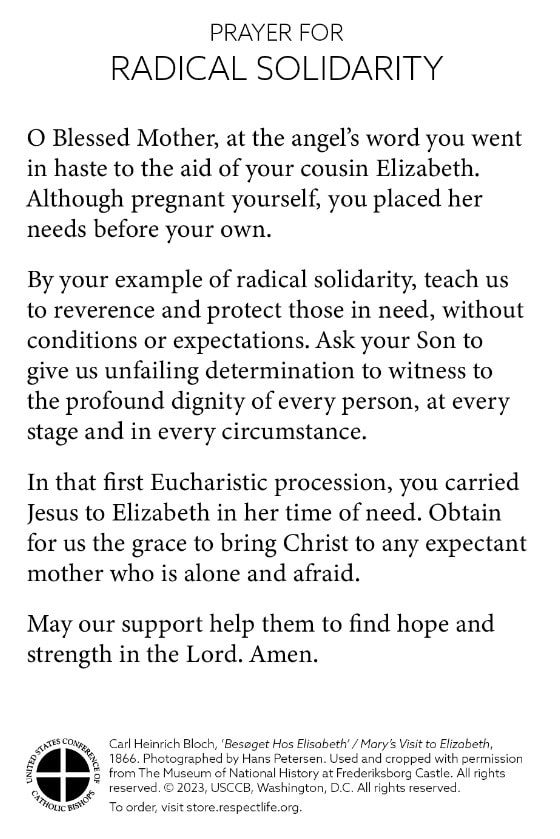 Look down, O Mother, upon the vast numbers of babies not allowed to be born, of the poor whose lives are made difficult, of men and women who are victims of brutal violence, of the elderly and the sick killed by indifference or out of misguided mercy.